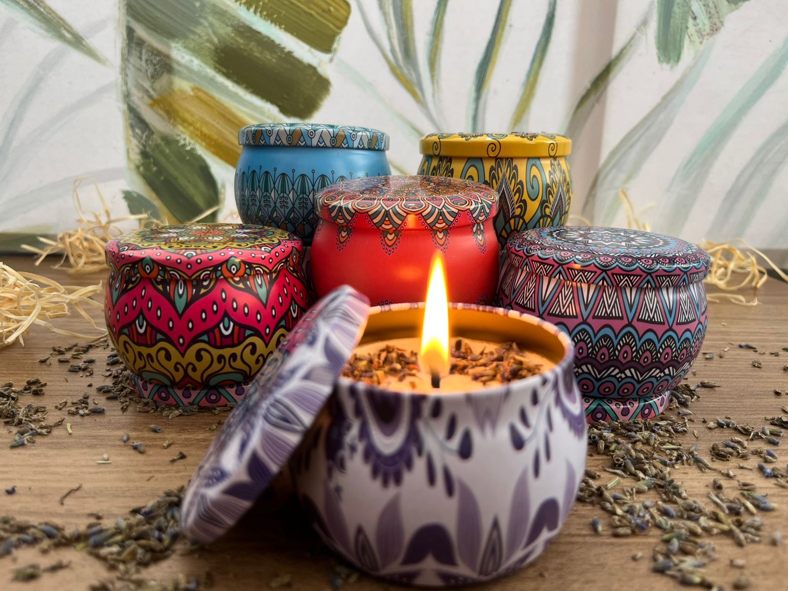 Com 120g de cera vegetal, exala o aroma relaxante da lavanda, promovendo calma e bem-estar. Seu design em lata decorada traz um toque boho e sofisticado, ideal para qualquer ambiente ou momento de autocuidado.
